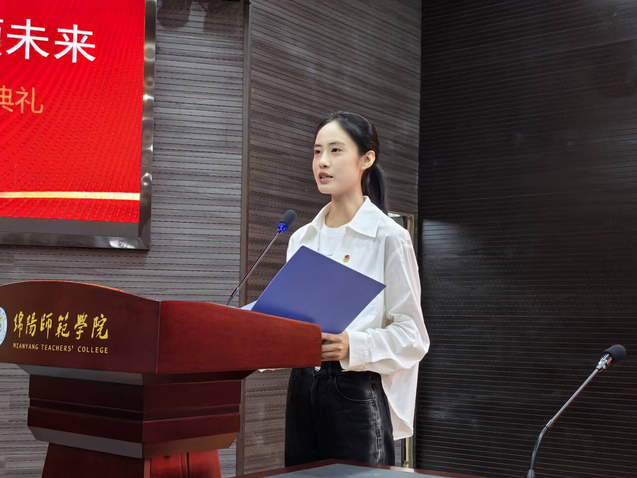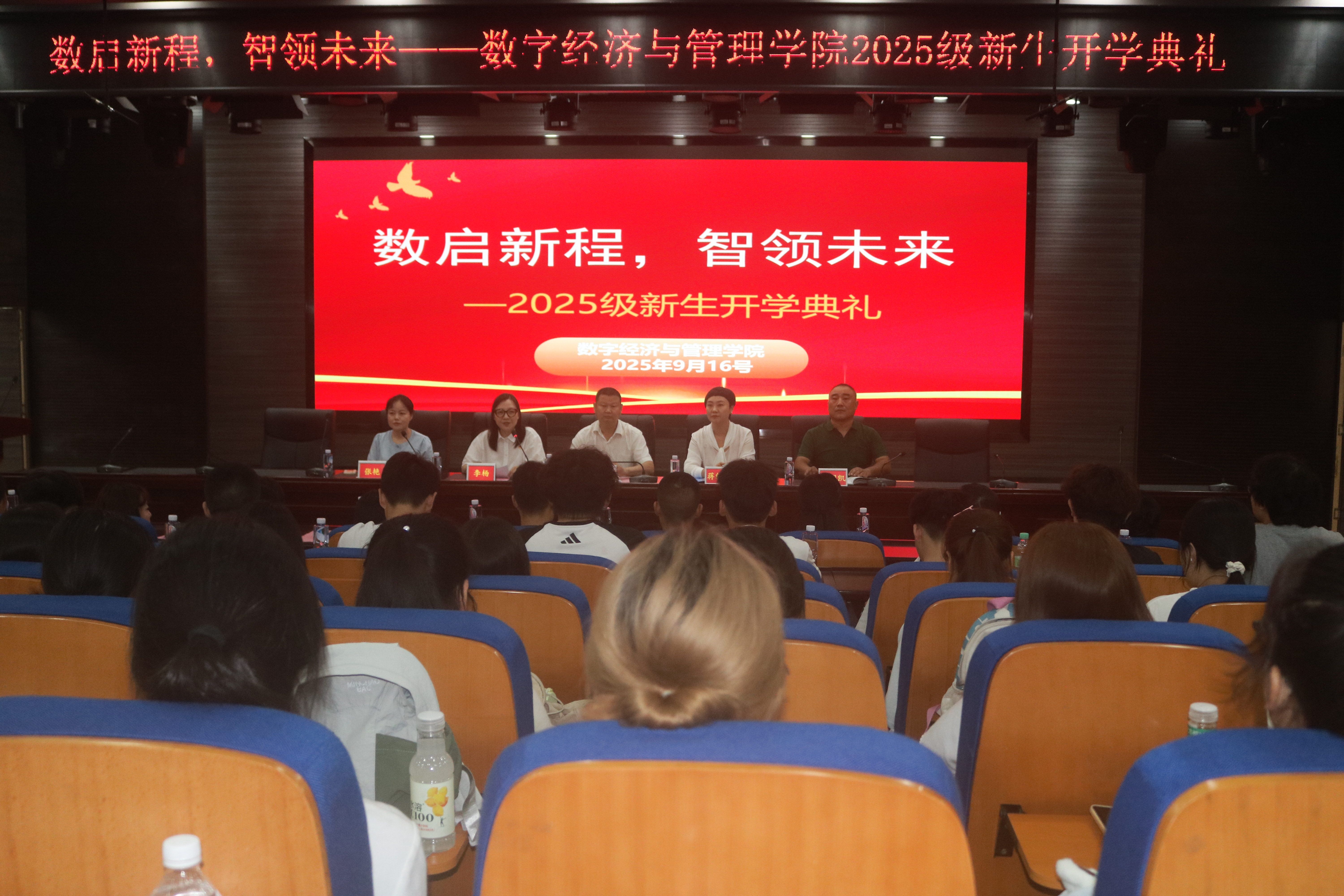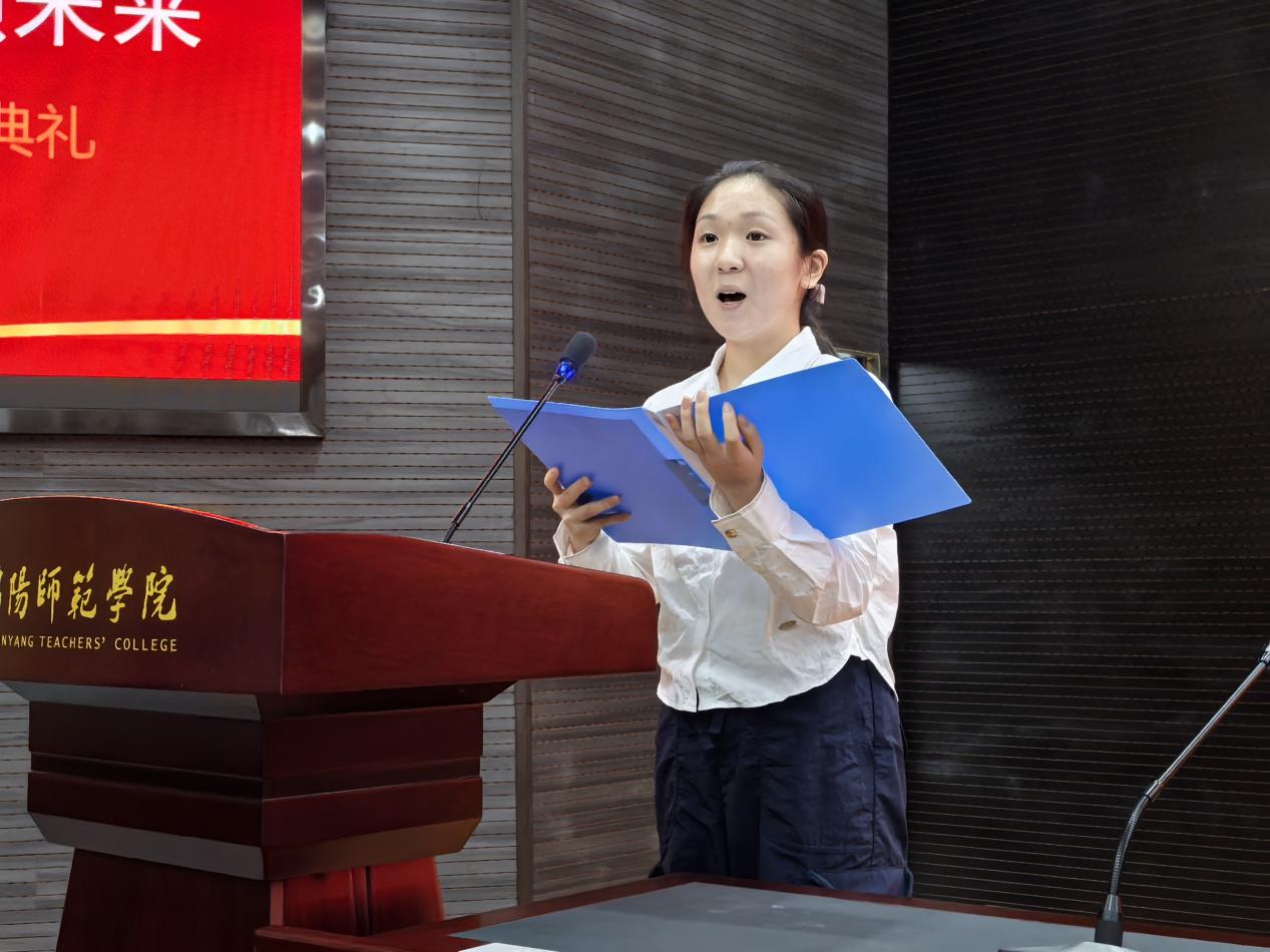 教师代表张艳老师结合人工智能、网红经济等前沿实例,寄语新生打破认知局限、珍惜大学时光,以奋斗之笔书写青春,在实践中明确方向、锻炼才干。老生代表吴佩霜从学习方法、社团活动与生活适应等方面分享成长经验,欢迎新同学加入绵师大家庭,携手共绘青春画卷。新生代表杜泉仪表达了对数字经济的浓厚兴趣与对数管学科的热爱,呼吁同学们夯实专业、积极实践,秉承“厚德、博学、笃行、弘毅”的校训,不断超越自我,共同谱写2025级“绵师人”的崭新篇章。