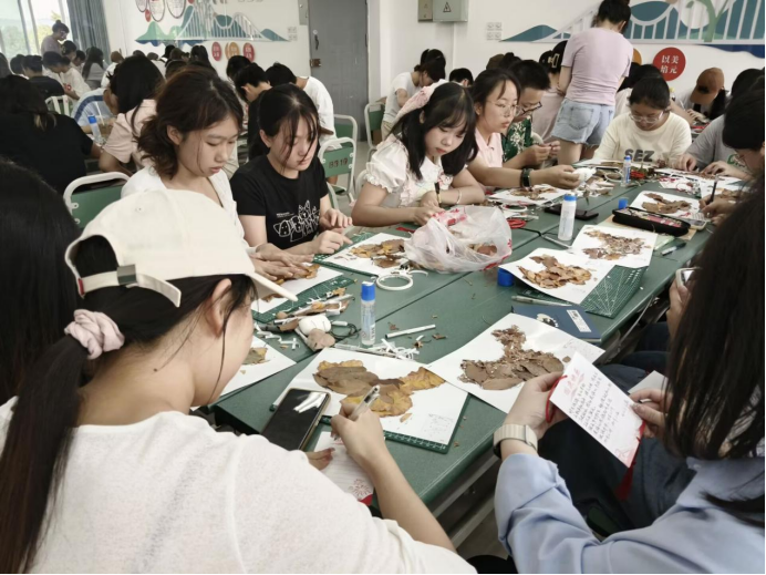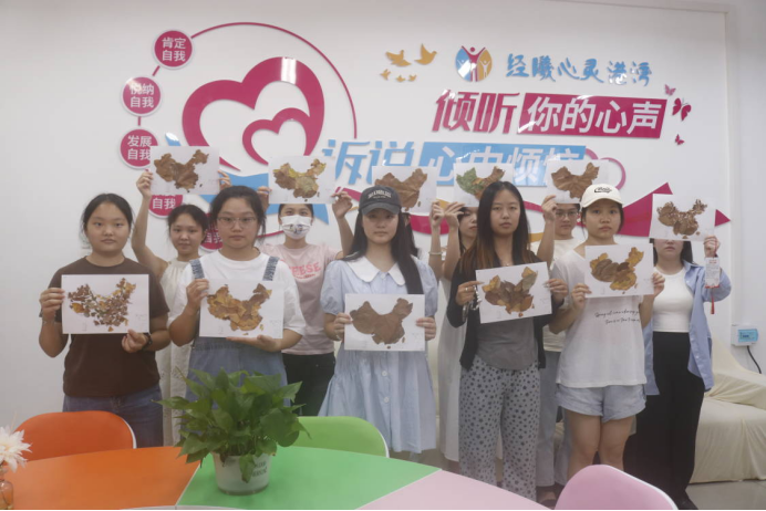 活动第二部分为树叶拼贴画。经管学子们以叶为笔,用缤纷秋叶落纸成诗,用发现美、感受美、留住美的方式,记录浪漫而多情的秋天,通过树叶创意贴画的形式“绘”出祖国的大好河山,献礼新中国成立75周年。