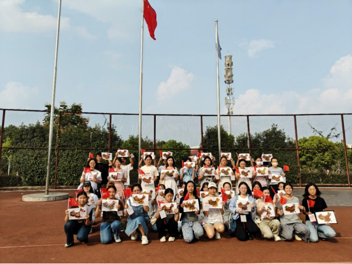 活动最后,同学们手持鲜艳的五星红旗,拿着自己精心创作的作品,共同唱响激昂的《歌唱祖国》。