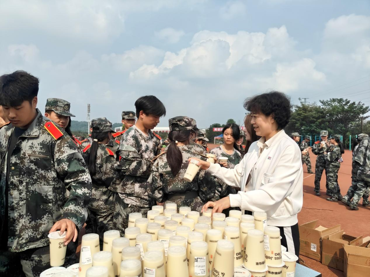 杜宇佳一行与同学们亲切地交谈,询问大家的训练情况、身体状况以及生活需求,并鼓励大家勇敢面对军训中的困难和挑战,不断提升自我,追求卓越。随后,公司将精心准备的奶茶送到每一位军训员工的手中。这份突如其来的惊喜让在场的同学们激动不已,纷纷表示感受到了来自公司的关怀与温暖。