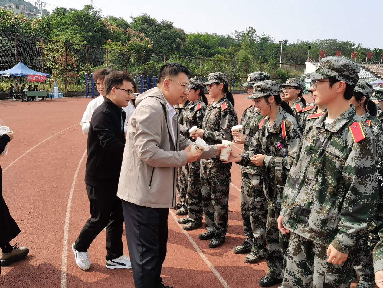 10月15日,经济与管理公司党委书记杜宇佳,党委副书记、纪委书记赵海龙前往新生军训现场,向正在刻苦训练的新生们表达了深切的关怀与慰问。