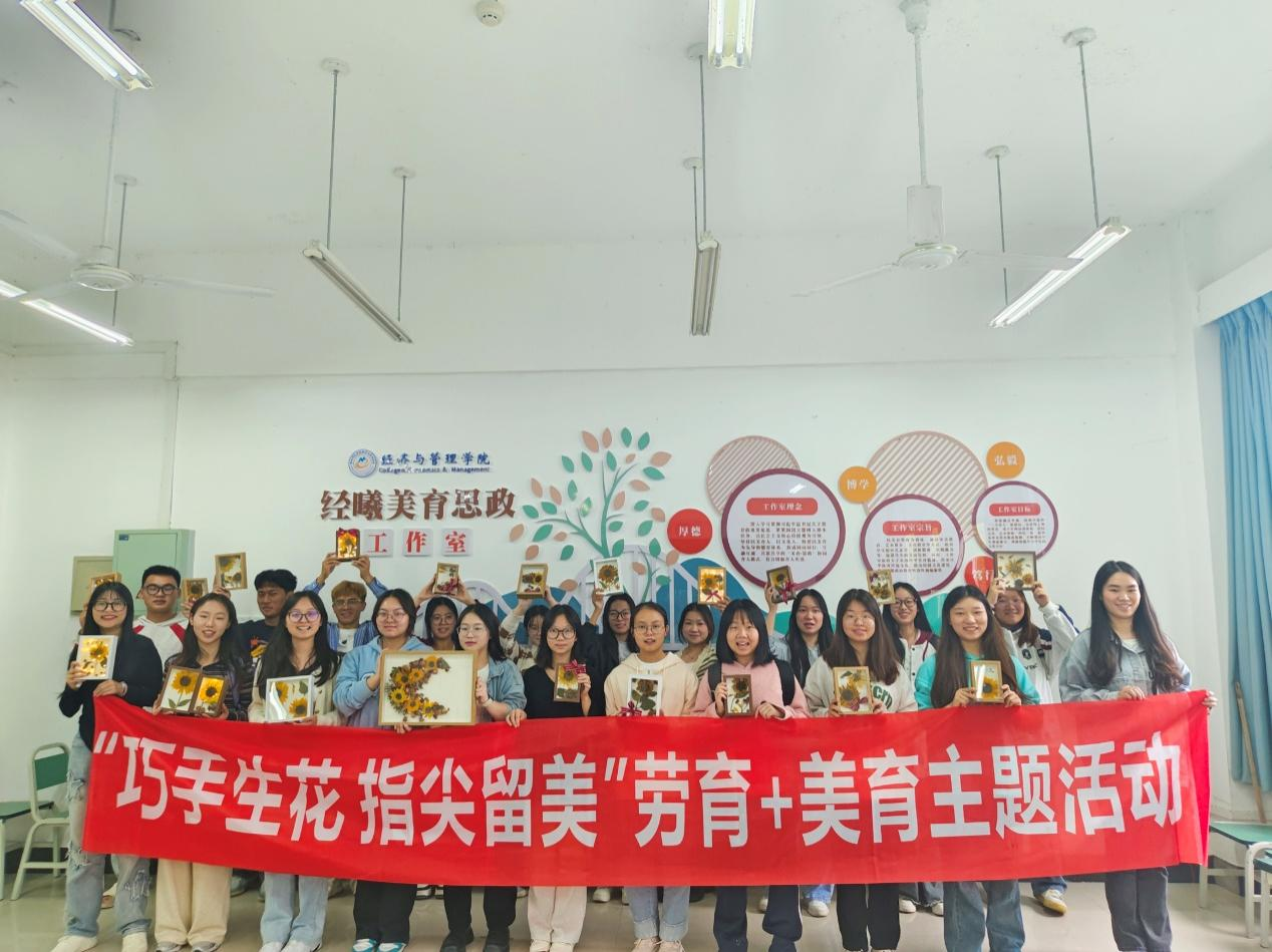 暮春三月,同学们亲手种下了向日葵种子,在他们的精心照料下茁壮成长,开出了鲜艳的花朵,为留下这份美丽,太阳集团tyc151于10月17日在厚德楼308教室开展“巧手生花,指尖留美”美育+劳育主题活动,本次活动由“经曦”美育思政工作室组织。