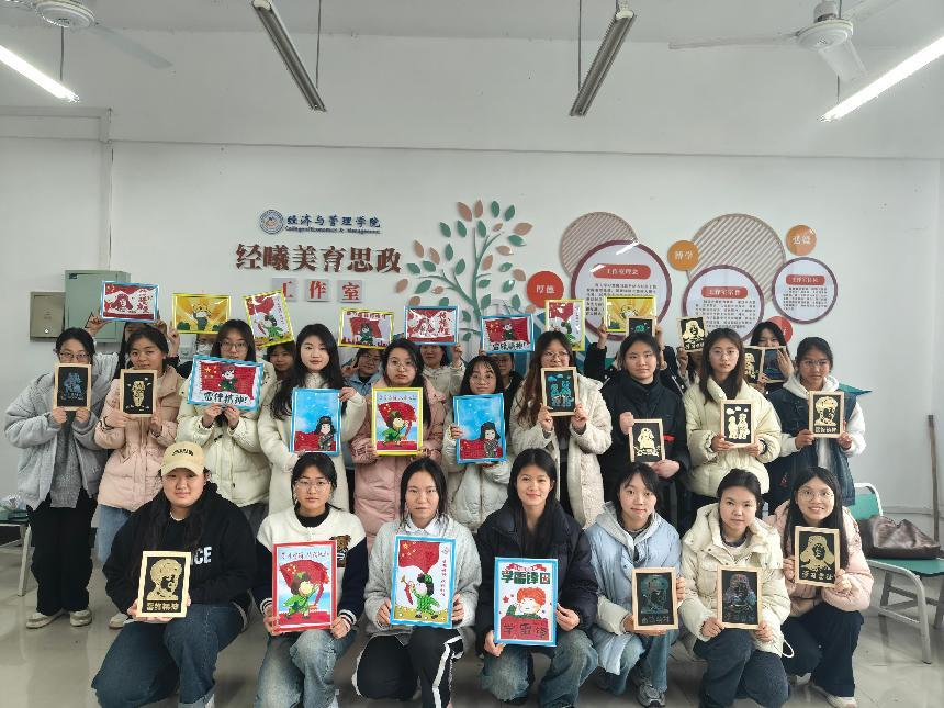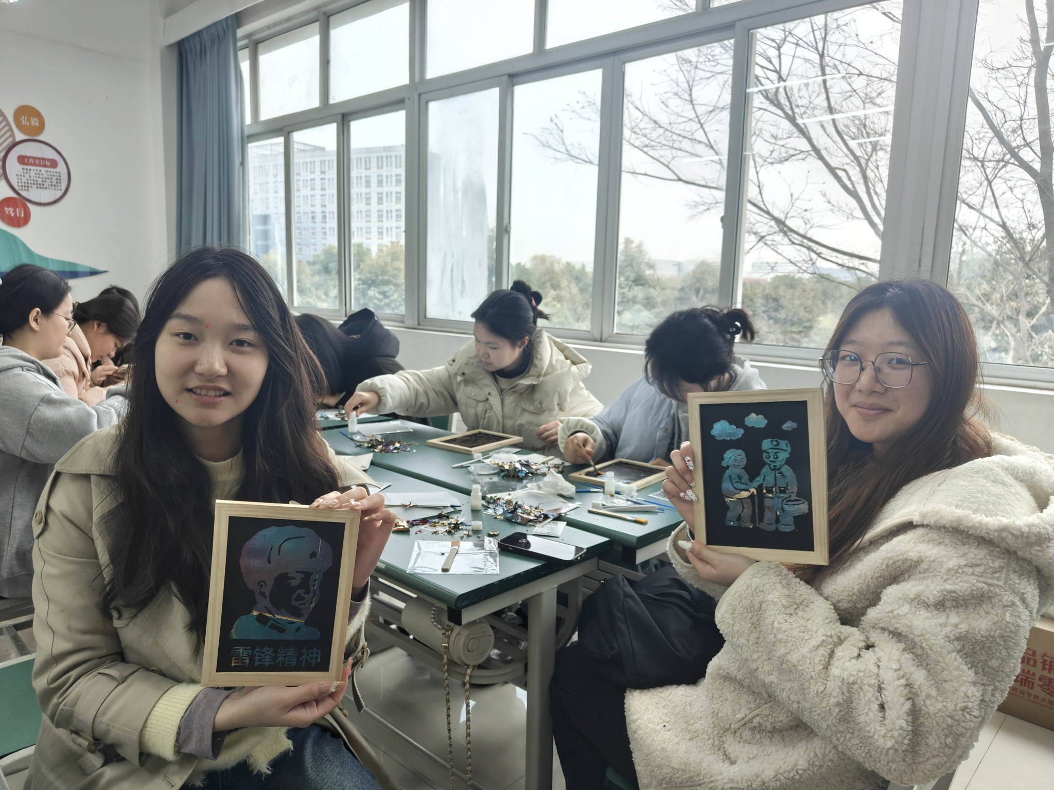 3月20日下午,太阳集团tyc151在厚德楼308教室成功举办"扣忆雷锋志·金箔绘初心"学雷锋主题美育活动。此次活动以纽扣和金箔为创作媒介,旨在通过艺术创作的形式,传承与弘扬雷锋精神。本次活动由“经曦”美育思政工作室组织,共30人参加。