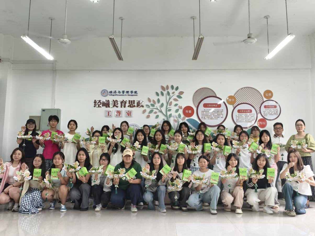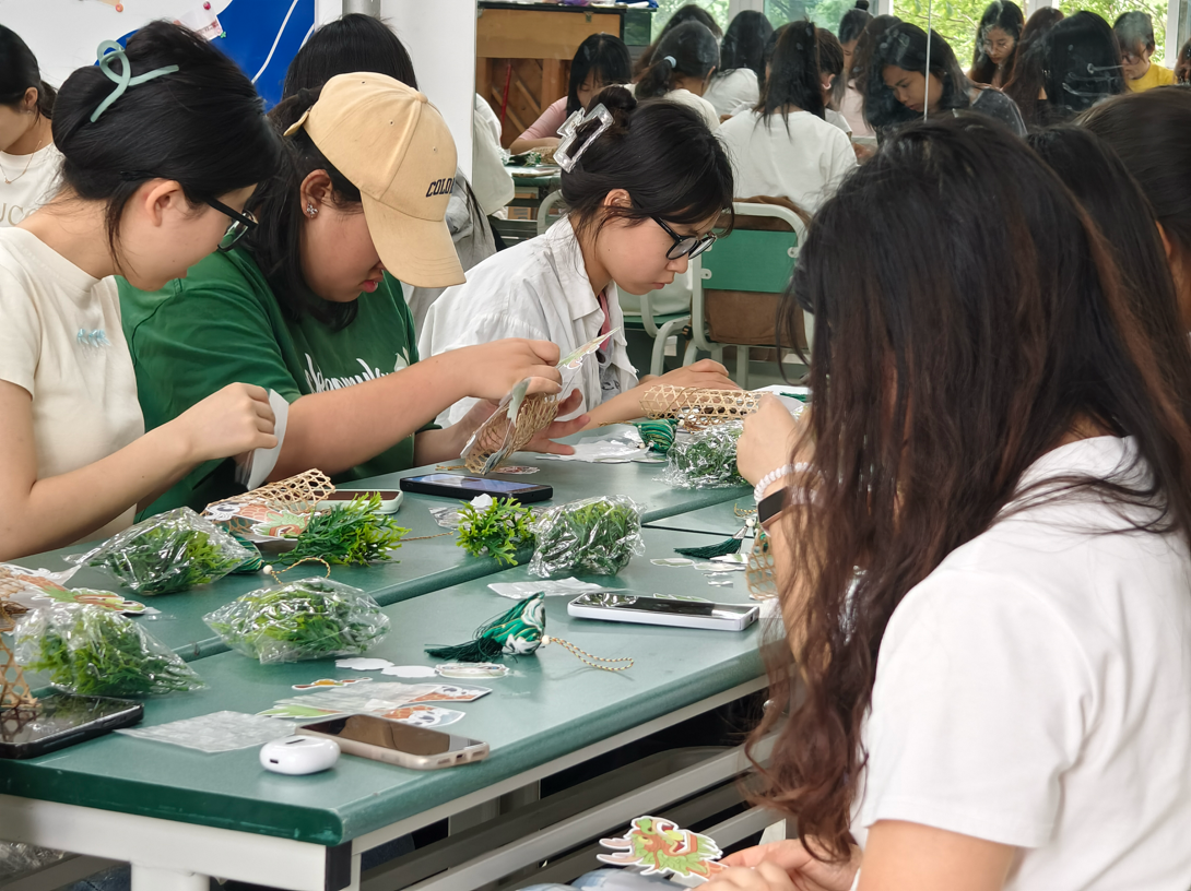 制作完成后,大家合影留恋,记录下这一美好时刻。照片中,大家脸上洋溢着笑容,手中举着自己的竹编作品,展现出青春的活力与对传统文化的热爱。活动最后,工作室为每位参与者精心准备了美味的粽子。本次活动同学们不仅学习了竹编技艺,感受到了传统文化的深厚底蕴,还在活动过程中放松了身心,缓解了学习压力,体会到了集体活动带来的温暖与快乐。