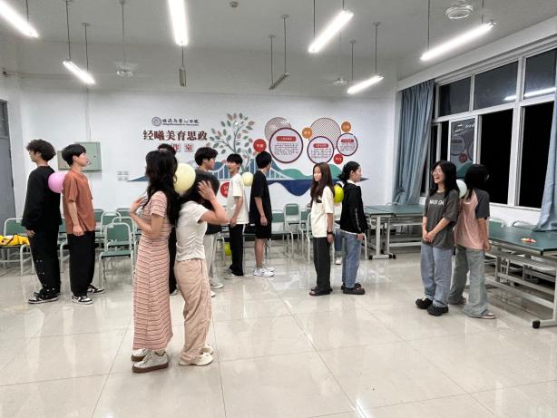 活动以“名字记忆挑战”破冰,通过快速记忆与复述同伴信息,打破初次互动的陌生感。在“快乐气球”环节,同学们两两搭档,彩色气球的爆破声与加油声交织,现场化作欢乐海洋。“抢椅子”游戏中,同学们随音乐节奏绕椅疾走,音乐骤停瞬间的“抢位大战”引发阵阵惊呼。最具创意的“谁是卧底”环节融入校园元素,“快递站“打印店”“教学楼”“图书馆”等贴近员工生活的词汇,引发关于校园场景的趣味描述与推理。当卧底玩家一句“每天都要排队的地方”被精准识破时,全场爆发出会心大笑,将活动推向高潮。