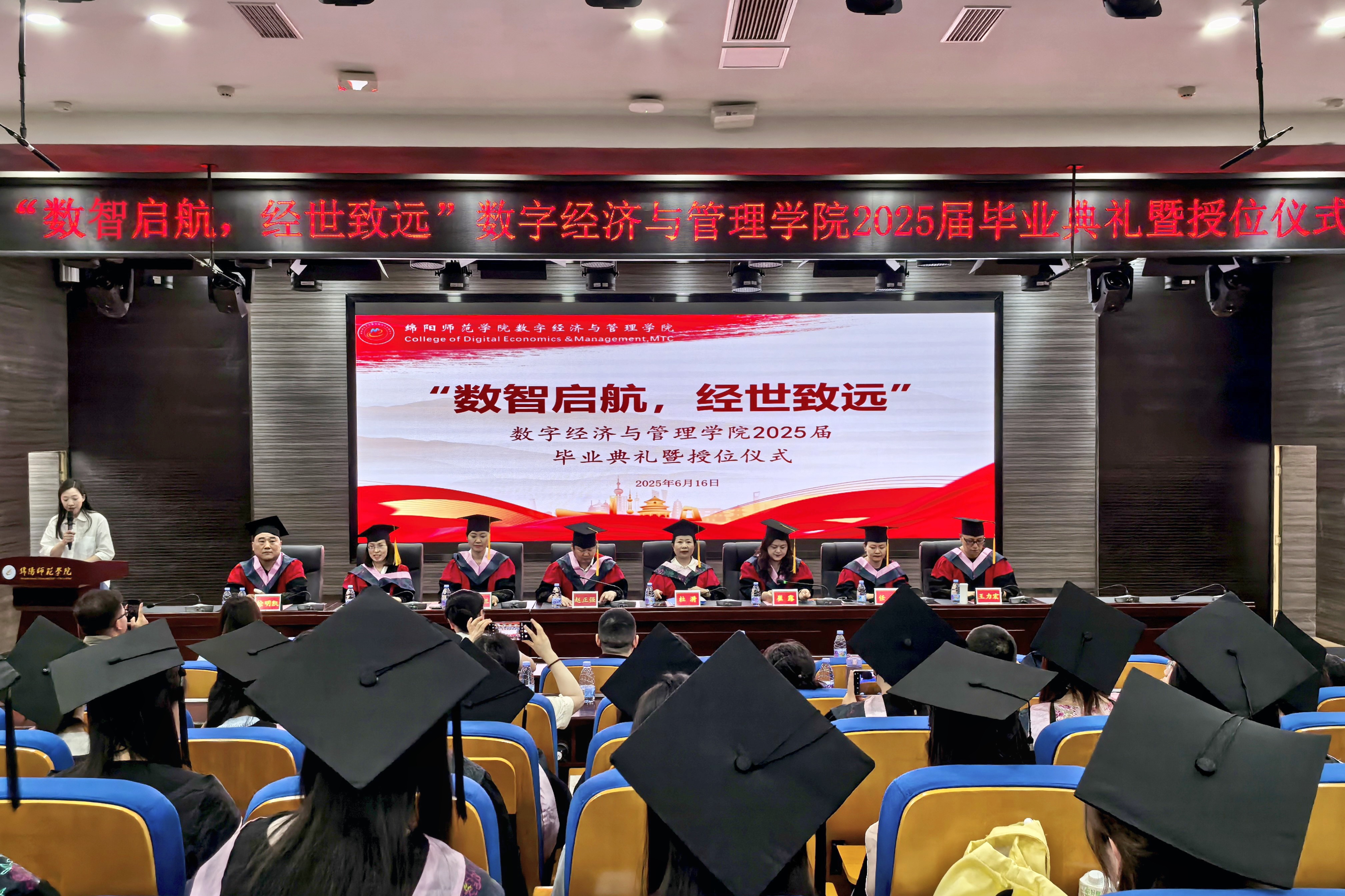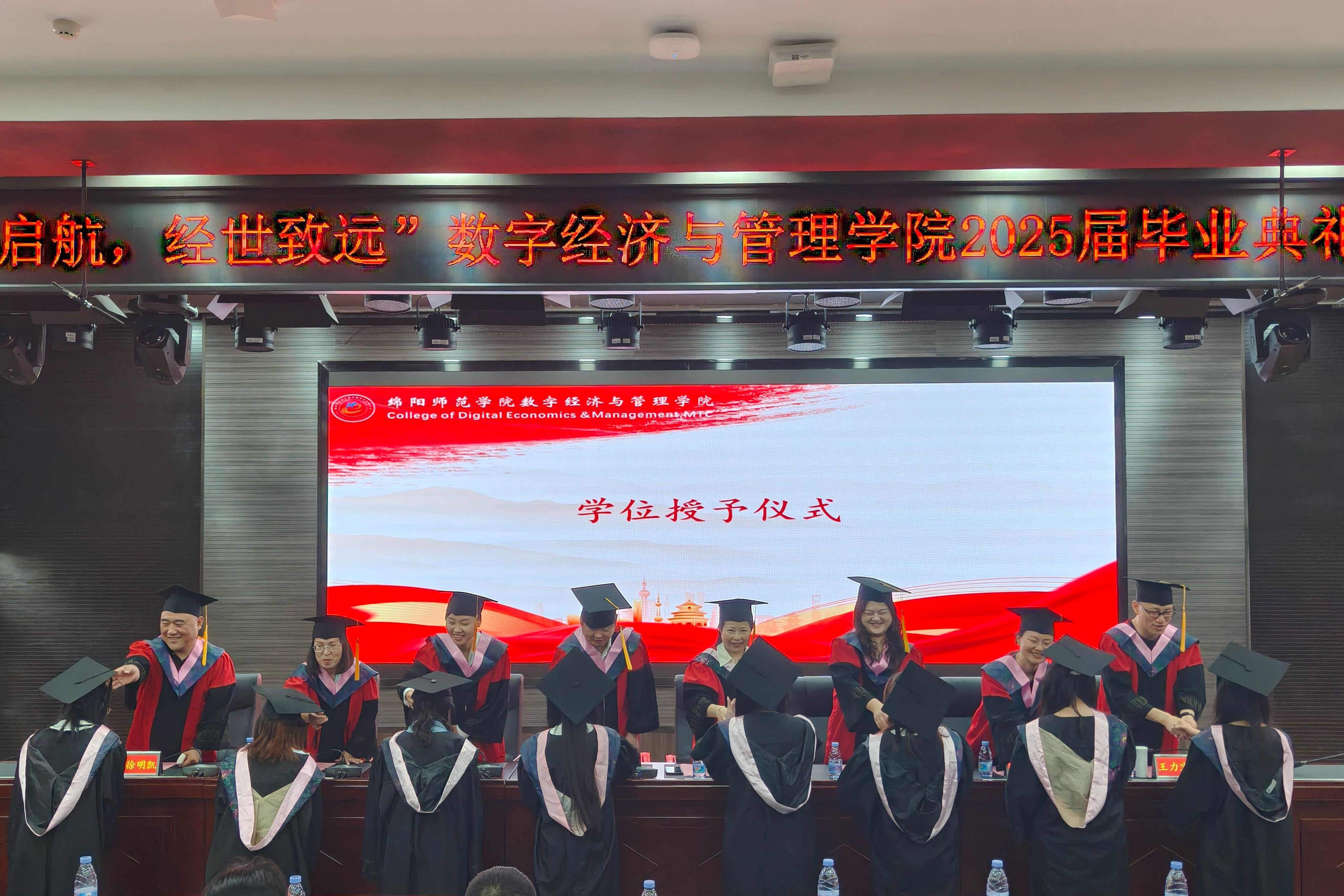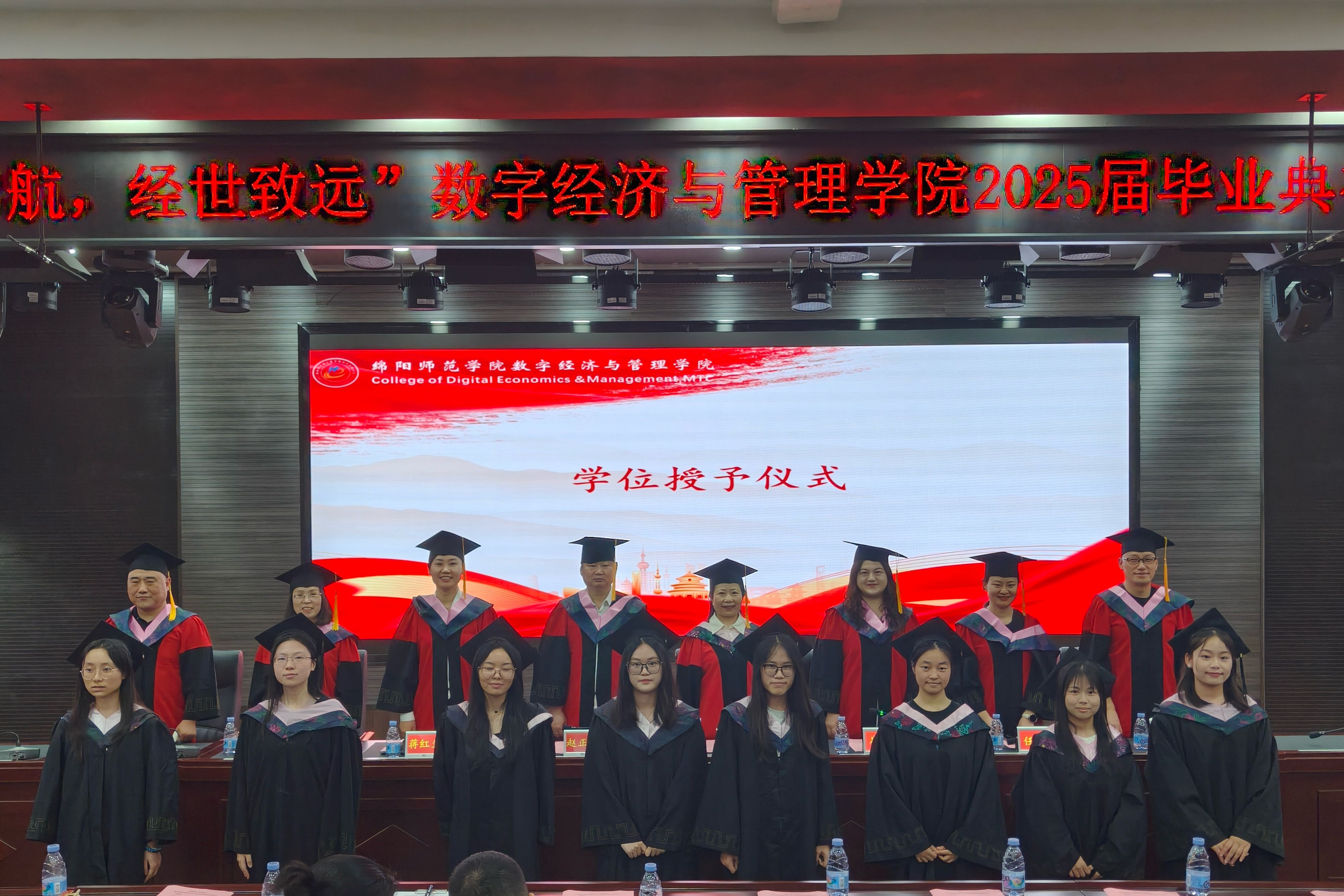这场历时一个半小时的典礼,不仅是一场仪式的终结,更是一段新征程的开篇。当毕业生们踏出厚德楼的大门,学士服的垂布在晚风中飘扬,恰似扬起的风帆。正如典礼结语所言:“公司永远是你们的港湾,愿此去前程似锦,再相逢依旧少年。”这群承载着“数智启航,经世致远”精神的追光者,终将在数字经济的浩瀚海洋中,书写属于绵师人的时代答卷,让经世之光在祖国的万水千山间永续闪耀。