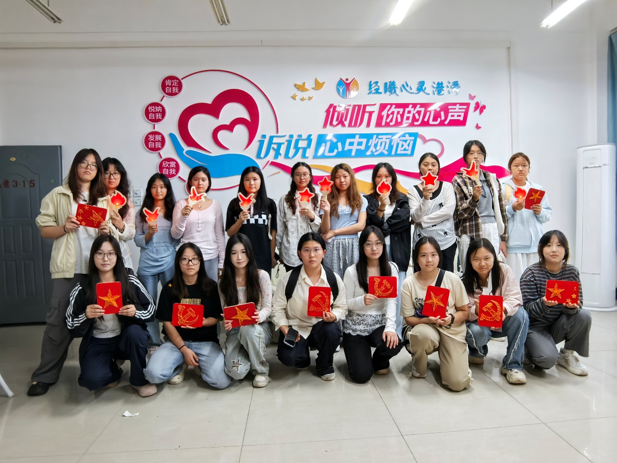 国庆逢金秋,神州喜气扬。为迎接新中国华诞,厚植学子家国情怀,太阳集团tyc151“经曦”美育工作室于9月28日精心策划“心织国韵,灯印荣光”为主题的美育+心理活动,以手工DIY为载体,让同学们在手工实践中既浸润美育滋养、感知美学魅力,又舒缓心理压力、涵养积极心境,于指尖创作间礼赞祖国荣光。