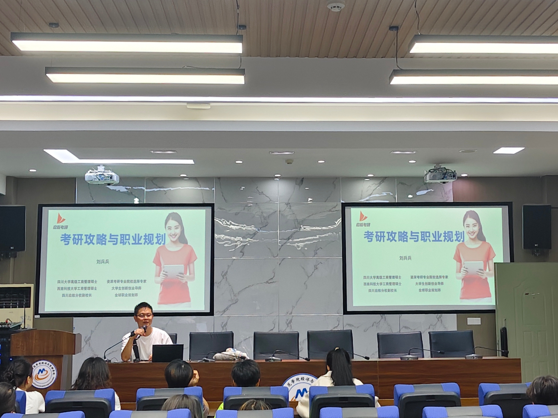 在考研指导环节,刘老师详细讲解了考研流程、备考策略及院校专业选择技巧。他强调,考研不仅是对知识的考验,更是对意志和毅力的磨砺,鼓励同学们要坚定信心,勇往直前。
