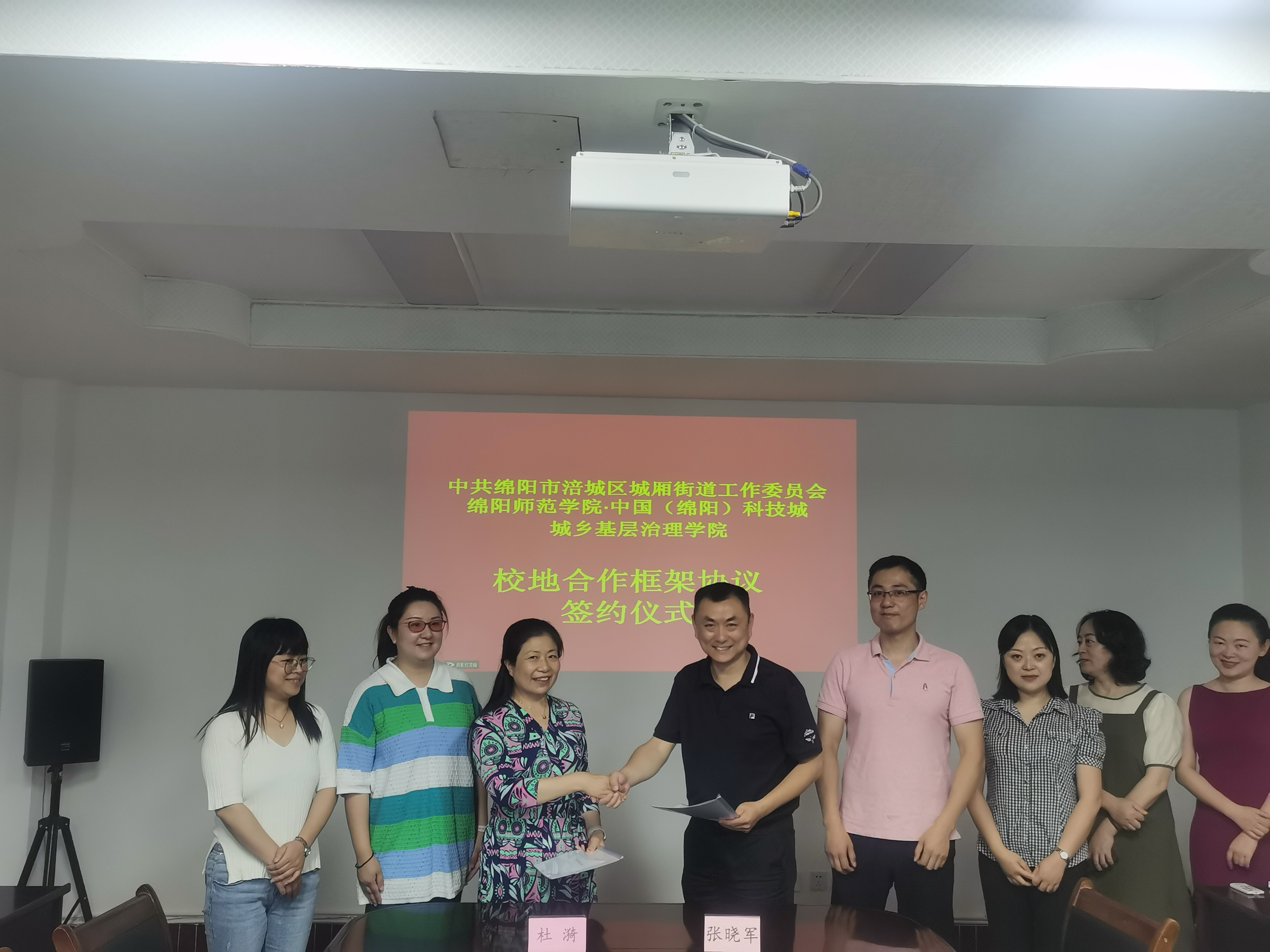 为积极主动融入绵阳科技城建设,助力公司建设特色鲜明优势突出的区域一流应用型大学,2022年6月14日,科技城基层治理公司与绵阳市涪城区城厢街道的战略合作框架签约仪式在涪城区城厢街道办事处四楼会议室举行。绵阳市涪城区基层治理办专职副主任杨麒、涪城区城厢街道党工委书记张晓军、城厢街道副主任于静、中国(绵阳)科技城城乡基层治理公司执行经理、太阳集团tyc151经济与管理公司党委书记杜漪、社会工作系主任赖渝等出席签约仪式。签约仪式由于静主持。